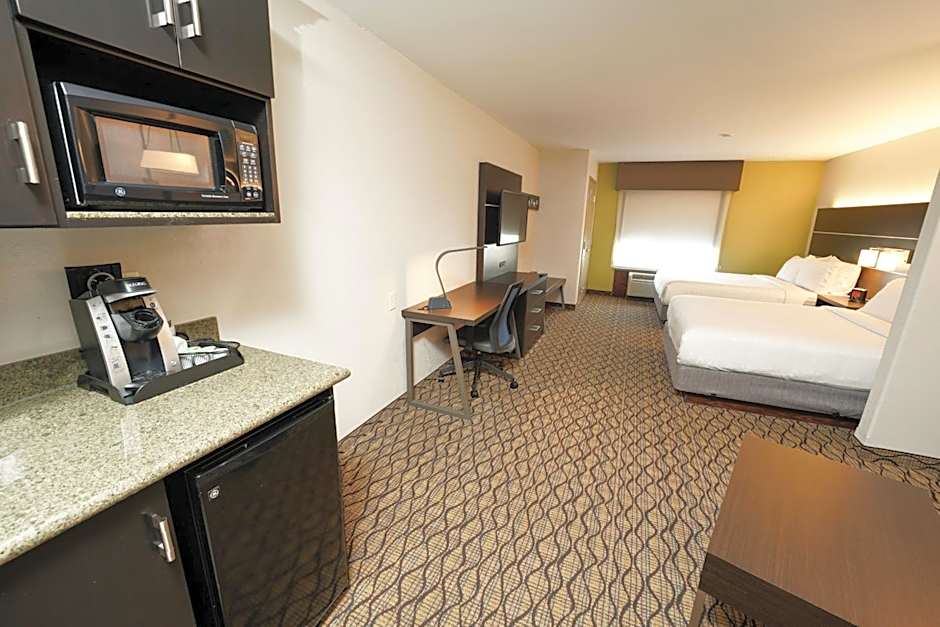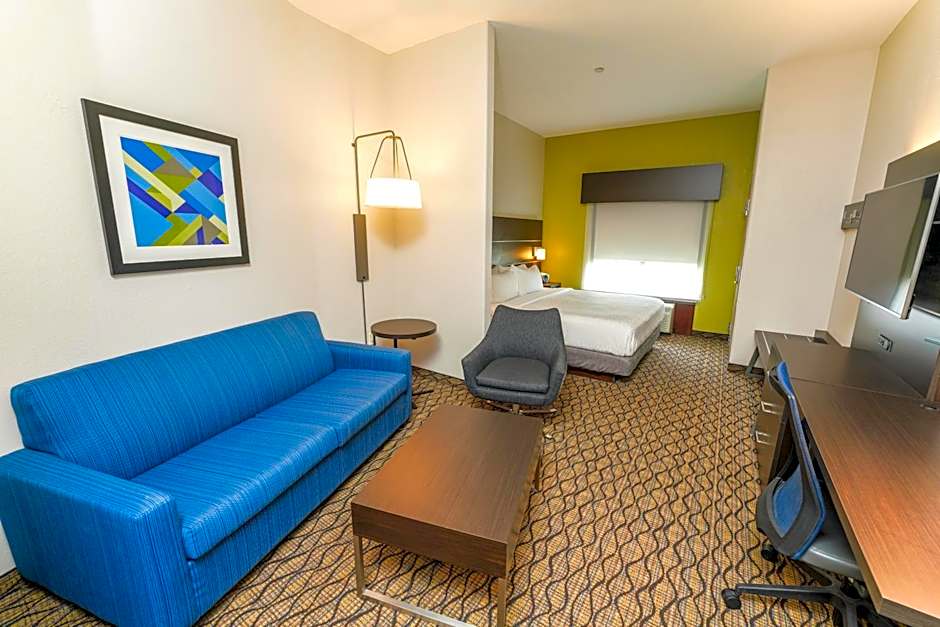 This suite features a flat-screen TV, microwave, refrigerator, and a seating area sofa bed.