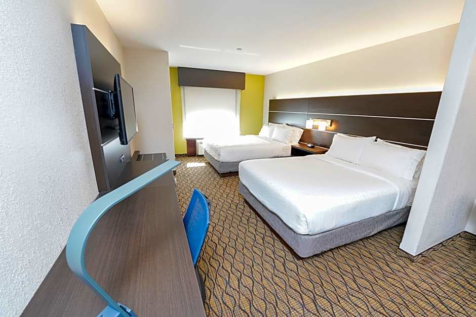 This room features a flat-screen TV, microwave, refrigerator, and a sofa bed.